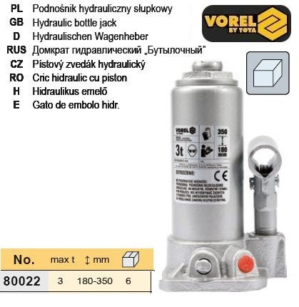 Найпопулярніша модель | Домкрат гідравлічний Польща стовбцевий F=3 т h=180-350 мм VOREL-80022 | [[ getCurrentDecimal('957') ]] ₴ |