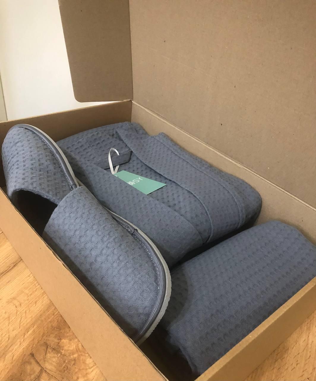 Чоловічий халат Nusa 1163 з тапочками і рушниками, Темно-синій, L/XL, Чоловічий халат Nusa 1163 з тапочками і рушниками, Темно-синій, 3XL, Подарунковий набір Маренго6 (халат+рушник+капці)