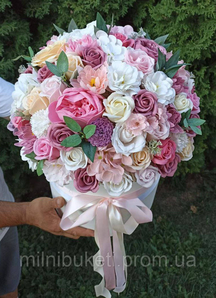 Прекрасний подарунок, аромат приємний, не різкий. Виглядає дуже презентабельно — ніби справжні троянди, але пахнуть милом. Замовляла мамі на ювілей, ефект "вау" був. Оформлення стильне. Доставили у визначений день!