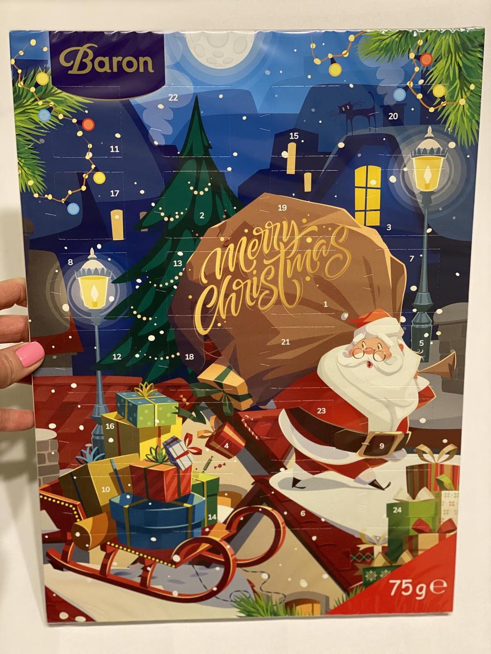 | Найдешевша модель | Адвент-календар шоколадний Новорічний Baron, 75 г із різними картинками в асортименті | [[ getCurrentDecimal('84') ]] ₴ |