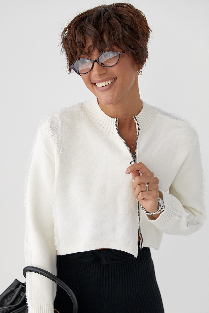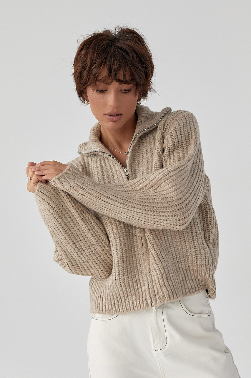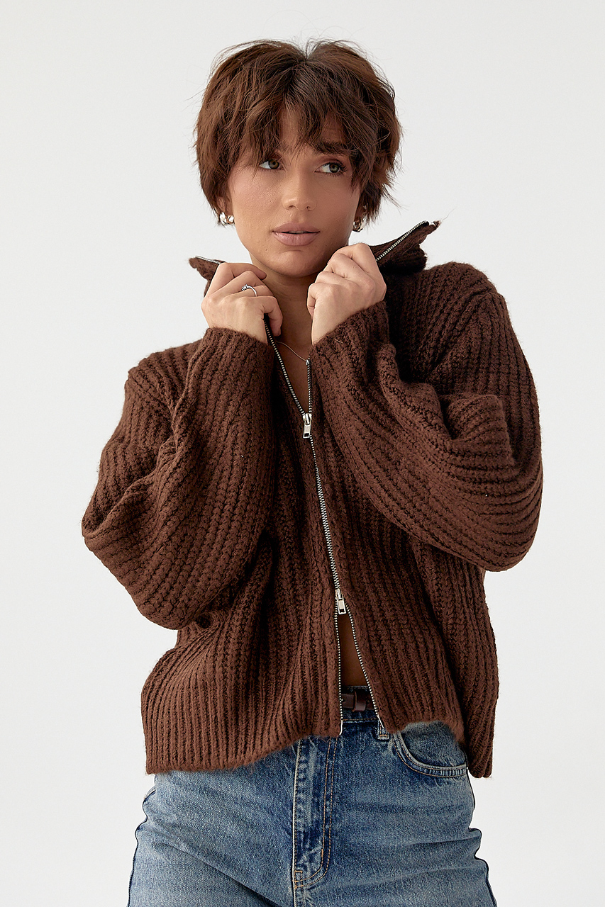 Кардиган 1048.2844 L-XL, В'язаний кардиган з бічною блискавкою - молочний цвет, ONE SIZE (є розміри), Кардиган на блискавці з крупної в'язки - коричневий цвет, ONE SIZE (є розміри)