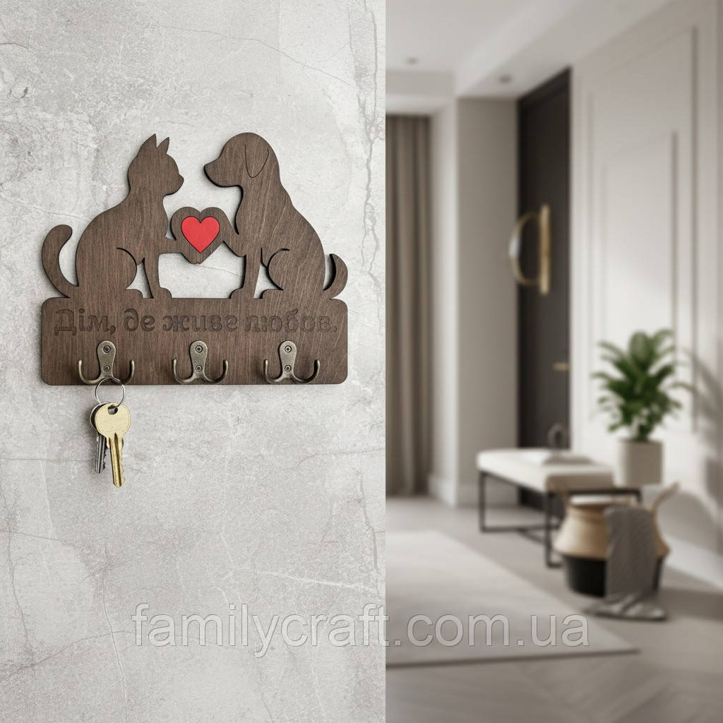 | Новинка | Тримач для ключів з дерева Дім, де живе любов ключниця з фанери з котиком і песиком | [[ getCurrentDecimal('600') ]] ₴ |