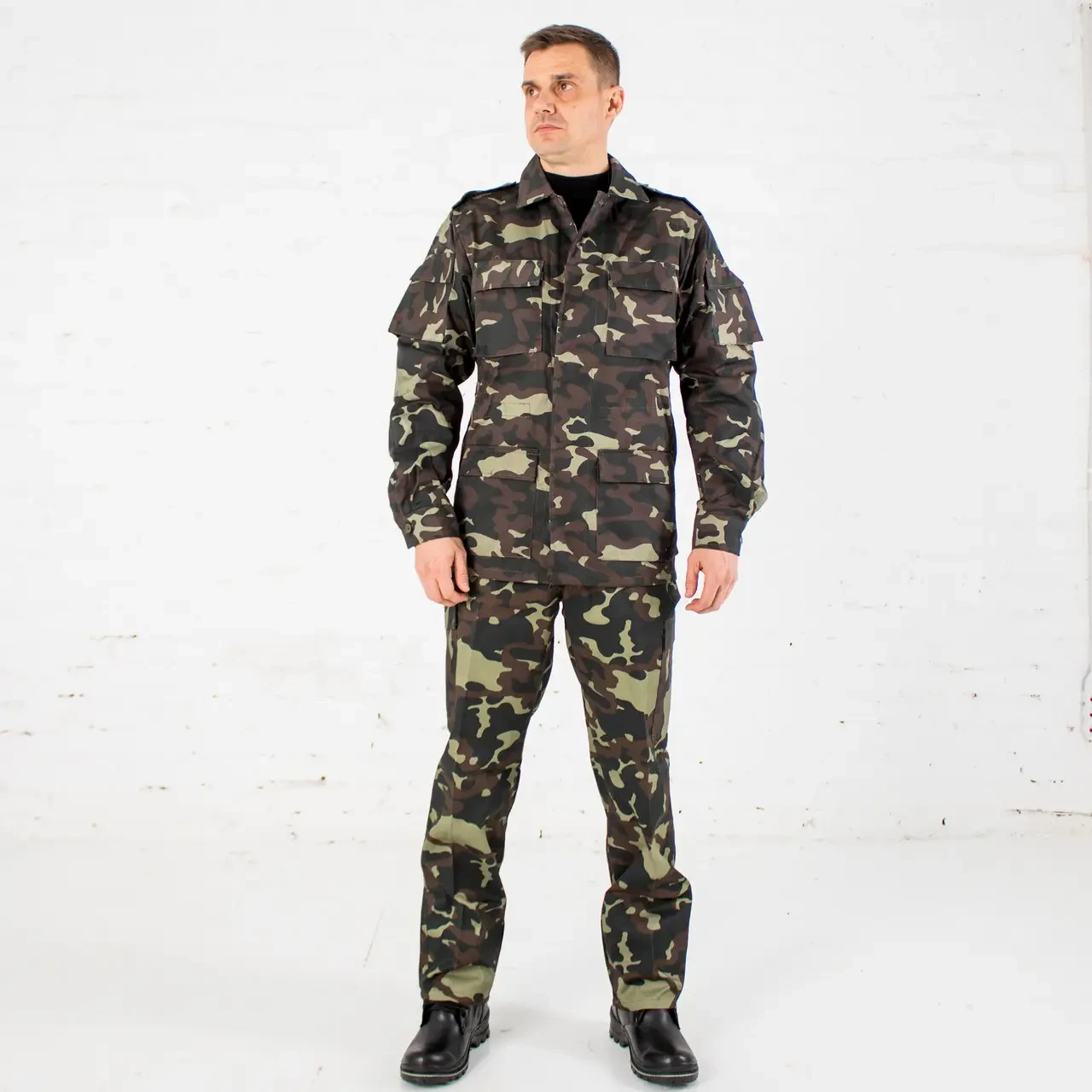 | Найпопулярніша модель | Чоловічий камуфляжний костюм для охорони Дубок, робочий літній камуфляж 56 | [[ getCurrentDecimal('1250') ]] ₴ |