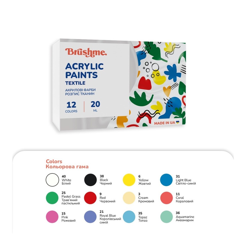| Новинка | Акрилова фарба текстильна Набір 4201 Brushme AP4201, 12 кольорів | [[ getCurrentDecimal('500') ]] ₴ |