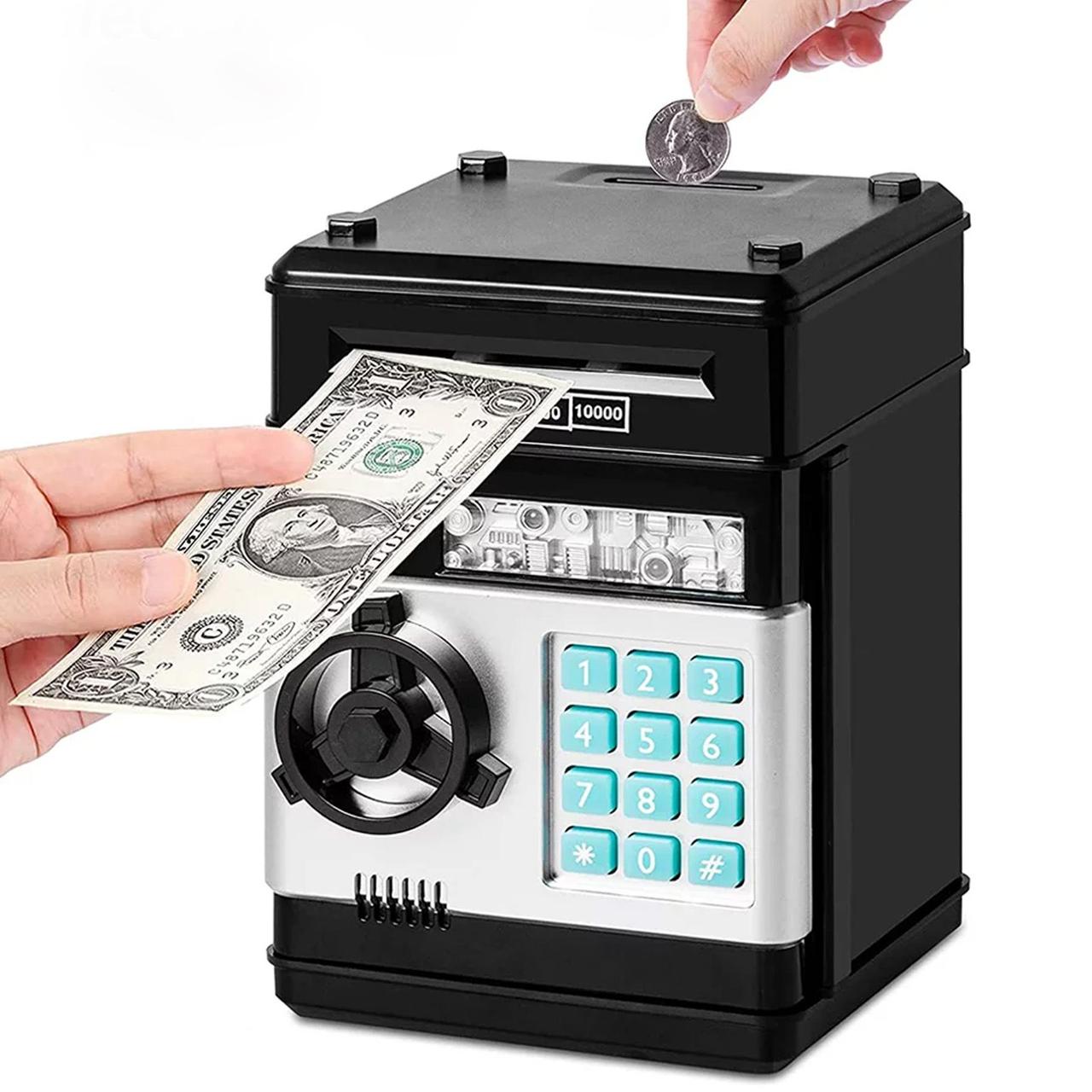 | Новинка | Електронна скарбничка-сейф з кодовим замком та купюроприймачем, Чорна / Дитячий банкомат для паперових грошей і монет | [[ getCurrentDecimal('591') ]] ₴ |