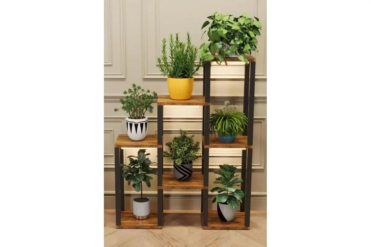 Етажерки (стелажі) — мають кілька рівнів, дозволяють розмістити кілька горщиків одночасно. Підходять для балконів, терас, віталень.