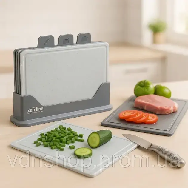 НовинкаКухонний набір дощок Zepline ZP-00220 5 предметів із підставкою сірий[[ getCurrentDecimal('702') ]] ₴