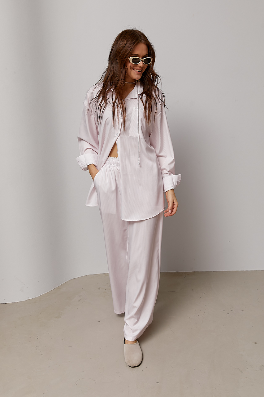 | Новинка | Смугастий костюм із сорочки та штанів палаццо - пудра цвет, ONE SIZE (є розміри) | [[ getCurrentDecimal('1600') ]] ₴ |