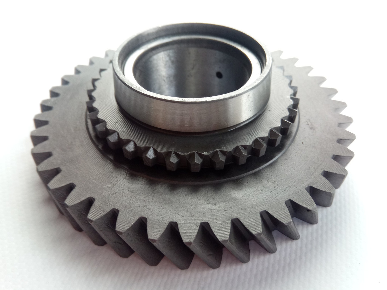 Косозубі шестерні. Зуби цих шестерень нахилені під певним кутом. Вони працюють тихіше, ніж прямозубі шестерні, і використовуються у більшості сучасних трансмісій через їхню ефективність.