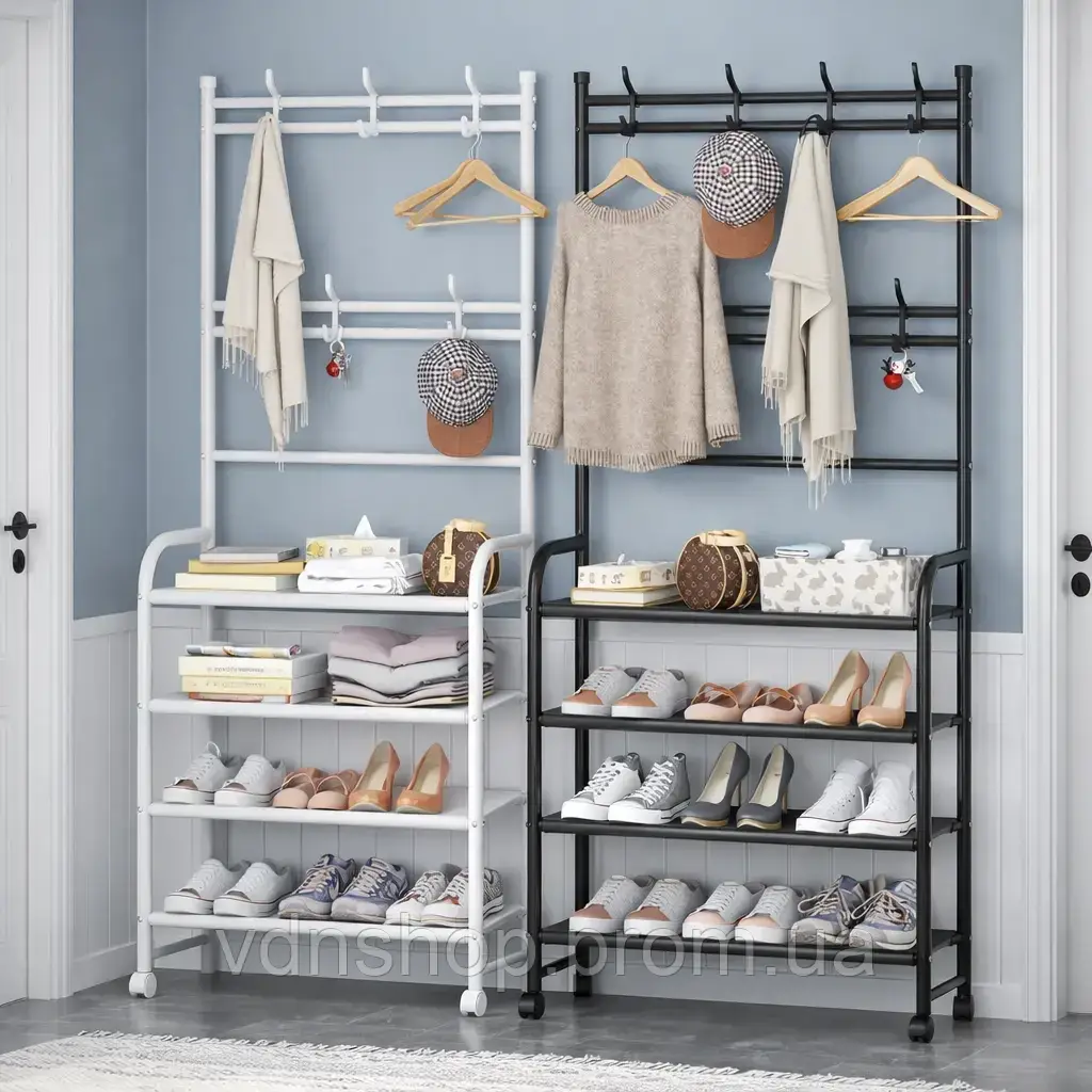 НовинкаЗалізна вішалка для одягу + підставка для взуття, 2 в одному, 4 полиці "Multi-functional shoe and hat rack"[[ getCurrentDecimal('437') ]] ₴