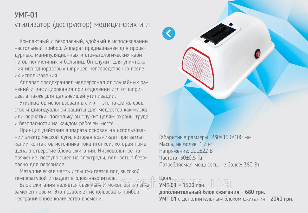 Найпопулярніша модель | МЫ РАБОТАЕМ ! Заказ после звонка. Утилизатор (деструктор) медицинских игл УМГ-01 | [[ getCurrentDecimal('3547') ]] ₴ |