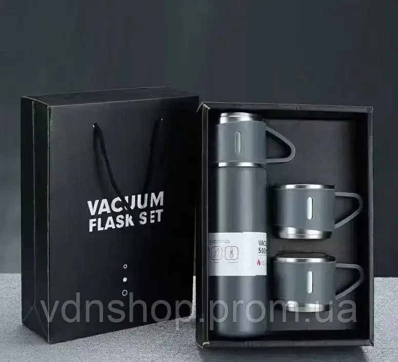 | Новинка | Термос із вакуумною ізоляцією, Подарунковий набір з 3 чашками 500 мл Сірий | [[ getCurrentDecimal('279') ]] ₴ |