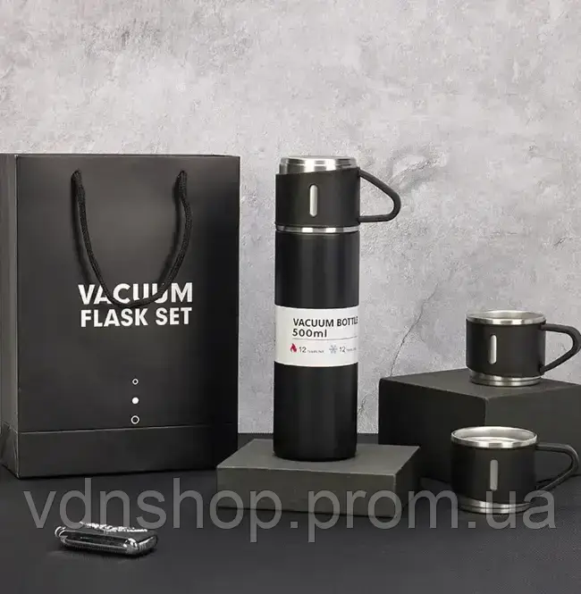 | Новинка | Термос із вакуумною ізоляцією, Подарунковий набір з 3 чашками 500 мл Чорний | [[ getCurrentDecimal('279') ]] ₴ |