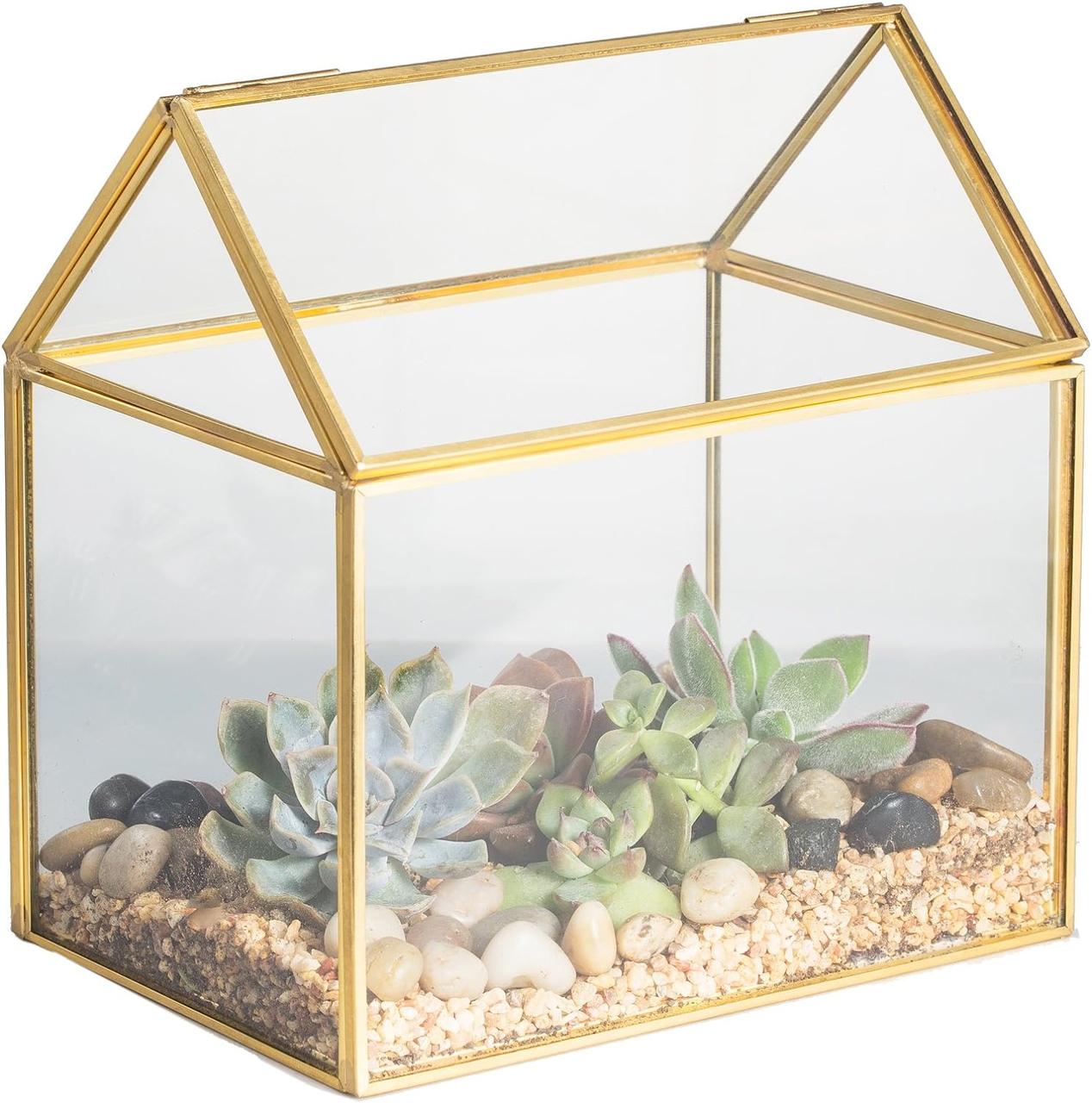 | Новинка | Скляний флораріум NCYP у формі будиночка з кришкою, золота рамка, 15.5×11×16 см, для сукулентів, мосаріум | [[ getCurrentDecimal('1499') ]] ₴ |