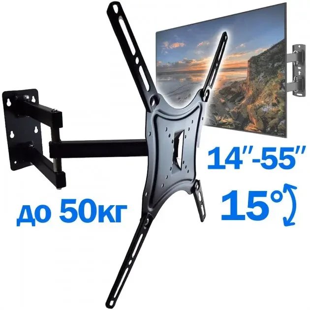 Новинка | Кронштейн для телевізора HDL-117B-2 Чорний настінний кріплення діагоналлю 14" - 55" тримач для плазми до 50 кг | [[ getCurrentDecimal('405') ]] ₴ |