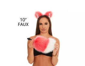 Відгуки та питання про - Анальний хутряний хвіст без пробки, Яскраво-рожевий з білим кінчиком, OKOVA sexstyle