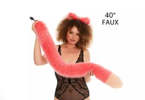 Відгуки та питання про - Анальний хутряний хвіст без пробки, Яскраво-рожевий з персиковим кінчиком, OKOVA 100 см. sexstyle