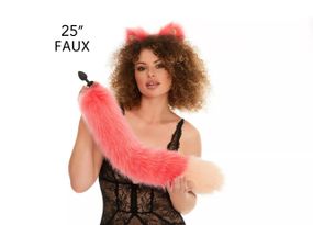 Відгуки та питання про - Анальний хутряний хвіст без пробки, Яскраво-рожевий з персиковим кінчиком, OKOVA 60 см. sexstyle