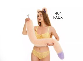 Відгуки та питання про - Анальний хутряний хвіст без пробки, Персиковий з фіолетовим кінчиком, OKOVA 100 см. sexstyle