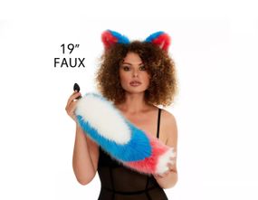 Характеристики Анальний хутряний хвіст без пробки, Триколірний: Білий, яскраво-блакитний, яскраво-рожевий з білим кінчиком, OKOVA 50 см. sexstyle