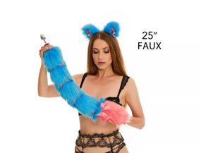 Анальний хвіст зі стрічкою без пробки, Яскраво-блакитний з яскраво-рожевим кінчиком, OKOVA 60 см. sexstyle