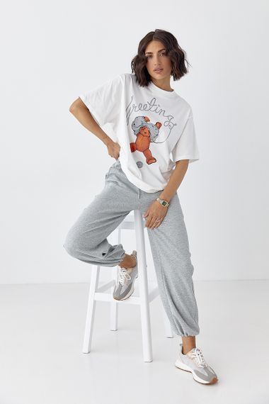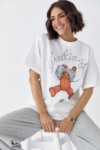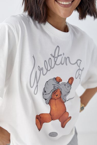 Відгуки та питання про - Бавовняна футболка з ведмедиком - білий цвет, S (є розміри)