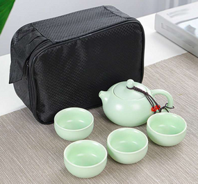 Відгуки та питання про - Чайний набір для чайної церемонії дорожній - чайник та 4 кухлі в сумці. Салатовий