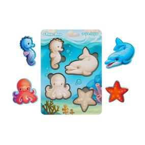Міні-вкладиші з серії "Морські тварини. Навколишнє середовище". На дні підказка-силует кожної тварини. 1. Розвиток логічного і понятійного мислення. 2. За допомогою такого методичного матеріалу, діти пізнають навколишній світ. 3. Розвивається дрібна моторика. Дістаючи і вставляючи певним чином деталі сортера, діти прекрасно тренують пальчики. 4. Працює зорова пам'ять, тренується увага і посидючість.