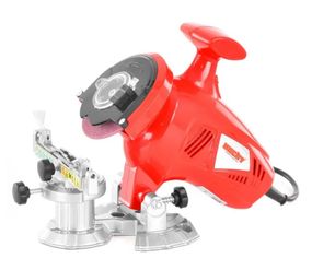 Електрична ланцюгова машина. Споживана потужність 250 Вт. Діаметр диска 100 мм, 7500 об/хв. / хв. Можливість регулювання кута шліфування. Проста в використанні. Ланцюг бензопили слід перевіряти після кожного різу, а при незначних пошкодженнях зубів ці дефекти можна усунути круглим напилком. Однак з часом зуби настільки тьмяніють, що їм потрібно приділяти більше уваги. Електрошліфмашина дозволить встановити правильний кут обточування зуба, глибину обточування і установку упору для обточування зуба. Це гарантує, що всі зуби будуть точно заточені.