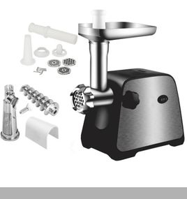 Переваги: Потужний двигун 4500 Вт забезпечує швидке та якісне меленння м’яса до 2-3 кг за хвилину. Прилад має функцію реверсу для розблокування м’яса, захист від перегріву, механічний фіксатор і комплект соковижималки, що розширює можливості використання.