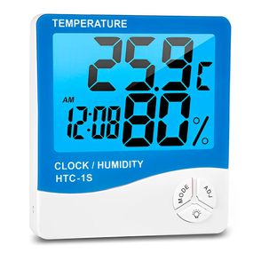 Якщо вам потрібен простий і функціональний кімнатний вимірювач температури і вологості для побутових потреб, то радимо вам звернути увагу на електронний термометр для кімнати НТС-1s. Це портативний домашній термометр, призначений для використання в приміщеннях, який відрізняється точністю показань і простотою використання. Від свого попередника HTC-1 дана модель відрізняється наявністю підсвітки дисплея та більшою діагоналлю дисплея. Основними функціями НТС-1s є вимір кімнатної температури і відносної вологості повітря. Всі значення відображаються великими цифрами на ЖК дисплеї. З додаткових функцій присутні запис максимальних і мінімальних значень, годинник, будильник і календар. Додатковими можливостями для вас є установка 12 або 24 годинний формат часу. Невеликий корпус цієї кімнатної електронного термометра ви можете як поставити на шафу, полку, стіл, тумбу завдяки вбудованій підставці, так і повісити на стіну. Живлення від однієї батареї типу ААА. Термометр гігрометр для вимірювання температури НТС-1s можна використовувати вдома, в офісі і будь-якому приміщенні, де ви хочете стежити за температурою повітря і вологістю.