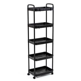 Опис Етажерка мобільна п'ятиярусна універсальна пластикова 41х25х127см Чорна SW-00002109