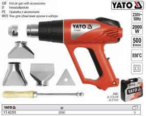 Відгуки та питання про - Фен технічний W=2000 Вт t°: 350°/550°C 500 л/хв 6 аксесуарів YATO-82291