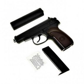 Характеристики Іграшковий пістолет на кульках "Пістолет Макарова" Galaxy G29A з імітацією глушника метал чорний