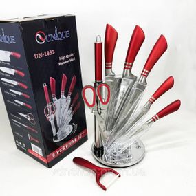 Опис Хороші кухонні ножі для побутового використання UNIQUE UN-1832 9 шт, Сталеві кухонні ножі MJ-95