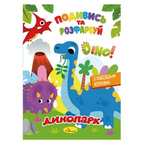 Опис Книжка Розмальовка "Подивись і розфарбуй Динопарк" РМ-44-16 з підказками в середині