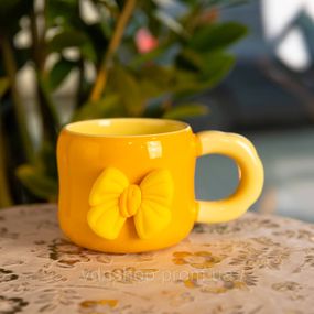 Опис Кубок порцелянова з магнітом Бант 400 (мл) подарункова кружка прикольна чашка для дітей на подарунок Жовтий з бежевим FM-52B