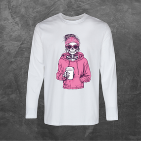 Характеристики Лонгслів унісекс з принтом стильний скелет база біла S
