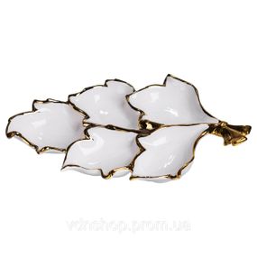 Опис Менажниця порцелянова на 5 секцій для закусок 37.5×22.5×5 (см) тарілка менажниця Білий із золотом ZBSY-15.5