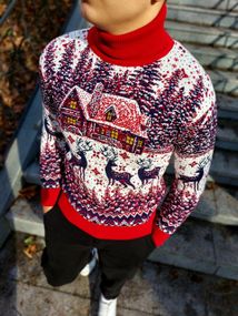 Відгуки та питання про - Мужской новогодний свитер Олени домик PA0001 цвет красный, размер XL