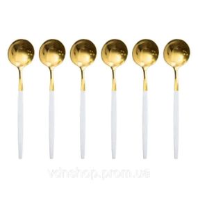 Набір чайних ложок 6 штук ложка чайна з нержавіючої сталі 12.9 см Білий із золотом HP-20-10