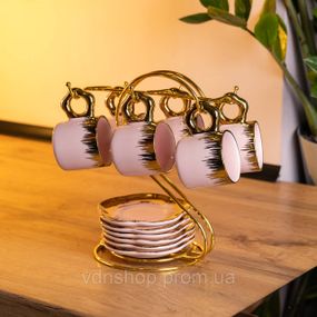 Характеристики Набір чашок для кави на металевій підставці 6 (шт) по 100 (мл) подарунковий кавовий сервіз набір чашок Розовий із золотом FM-48