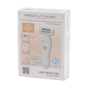Багатофункціональний набір для догляду за тілом ProfiCare PC-LBS 3001 поєднує в собі жіночу бритву 3-в-1, прецизійний тример та насадку-щіточку для очищення шкіри обличчя. Ідеальний для дбайливого видалення волосся на ногах, в зоні бікіні та під пахвами, а також для глибокого очищення і зняття макіяжу.