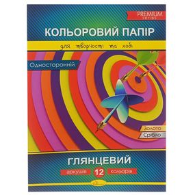 Набір одностороннього кольорового паперу "Глянцевий" А4 АП-1204-1, 12 аркушів