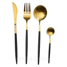Набір столових приборів 24 предмети столовий набір на 6 персон Золотистий з чорним HP-20-46
