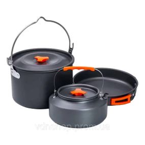 Набір туристичного посуду в сумці для походу та кемпінгу: каструля, сковорода, чайник HP39578C