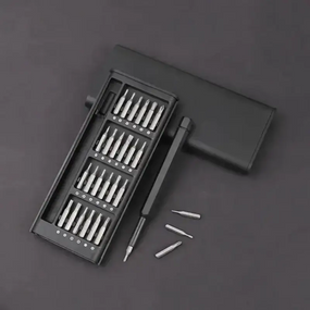 Надійний та універсальний набір для ремонту та для різних завдань Багатофункціональний набір викруток 25 в 1 для точного ремонту Набір викруток 25 в 1 – це ідеальний інструмент для роботи з електронікою, який дозволить легко розбирати та ремонтувати телефони, планшети, ноутбуки та інші гаджети. Завдяки широкому вибору насадок та зручної магнітної фіксації, кожна деталь залишається на своєму місці, а робота стає комфортною та швидкою. Повний комплект для точних робіт Набір включає 24 біти, виконані з високоякісної сталі CRV, що забезпечує довговічність та стійкість до зносу. Ергономічна ручка з магнітним фіксатором Алюмінієва рукоятка оснащена ковпачком, що обертається, для зручного захоплення і вбудованим магнітом, що утримує біти під час роботи. Компактний та зручний кейс Міцний пластиковий футляр із вбудованим магнітом надійно фіксує насадки навіть при перевертанні, запобігаючи їх випаданню. Переваги: 24 змінні біти для різних завдань Магнітний фіксатор для зручності роботи Міцний та зручний кейс для зберігання Компактний розмір, зручний для перенесення Підходить для ремонту смартфонів, ноутбуків та дрібної електроніки. Характеристики: Матеріал ручки: алюмінієвий сплав Матеріал біт: сталь CRV Намагнічений наконечник: так Довжина ручки: 125 мм Розмір кейсу: 158 х 67 х 18 мм