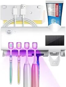 Відгуки та питання про - Настінний тримач зубної щітки з функцією стерилізації, дезінфікувальний засіб для зубних щіток із 4 слотами