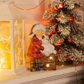 Опис Новорічна декоративна фігурка з підсвіткою 12×6×20 см Новорічний декор Дівчинка з подарунком з порцеляни CR-5-17