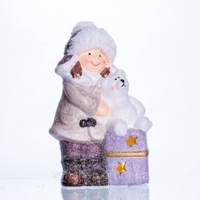 Опис Новорічна фігурка з підсвіткою Дівчинка з ведмежам із фарфору 12×7×20 (см) новорічний декор для дому, квартири на подарунок CR-5-5